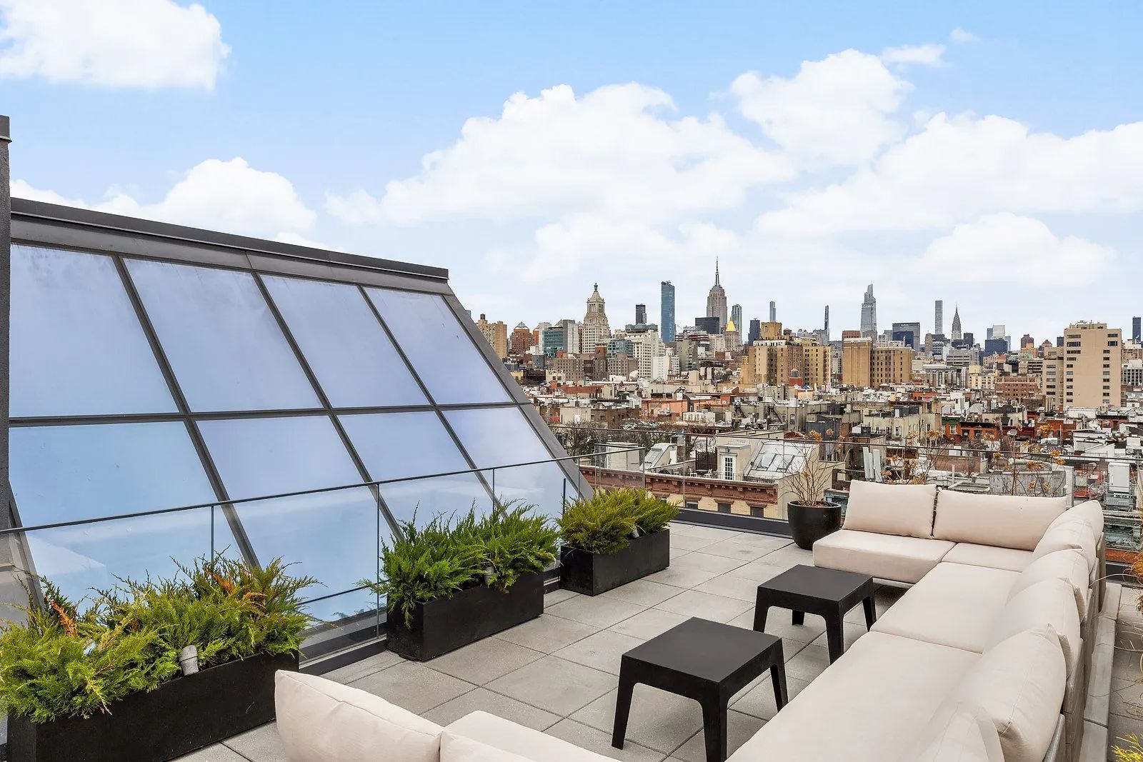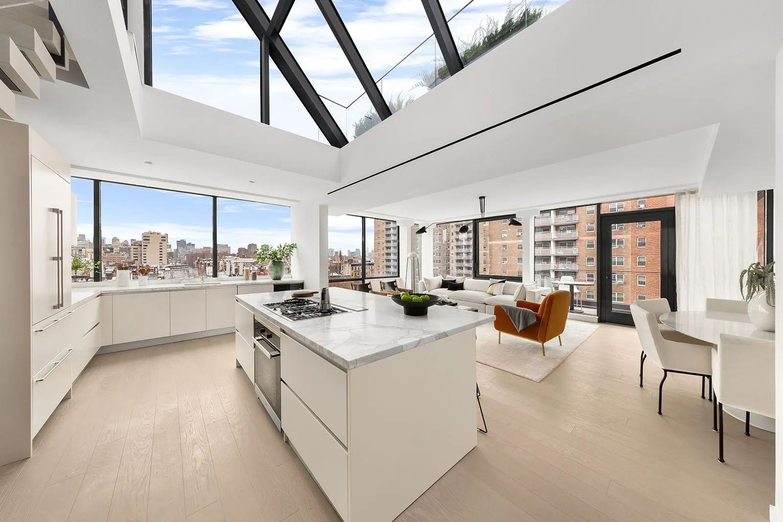 The penthouses at 75 First Ave feature direct connection to a private rooftop terrace with city views and large skylights.