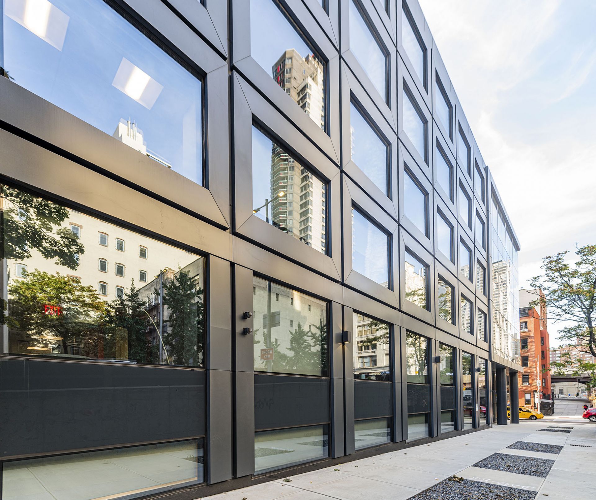 The building street façades are entirely constructed from curtain wall system with the integration of custom metal panel.